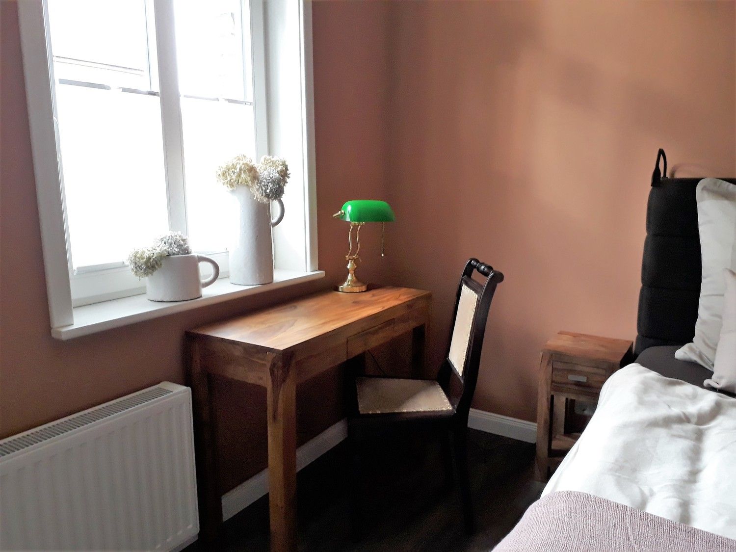 Die Wände sind mit atmungsaktiven Erdfarben gestrichen, auf Teppiche wurde verzichtet, wodurch ein fast allergiefreie Wohnung geschaffen wurde.