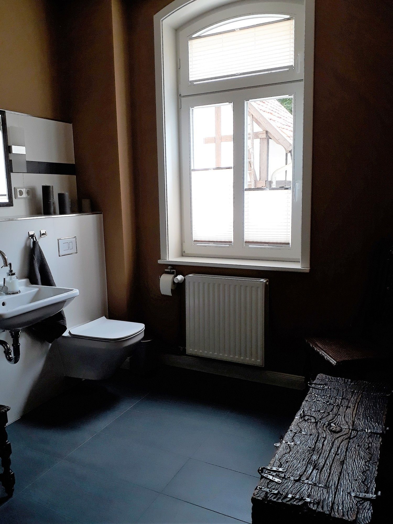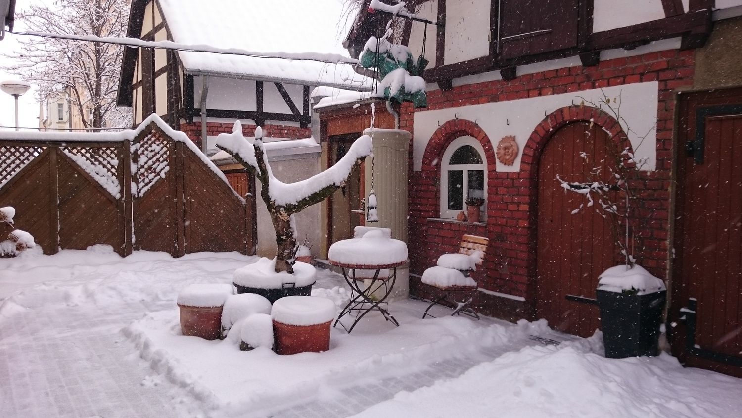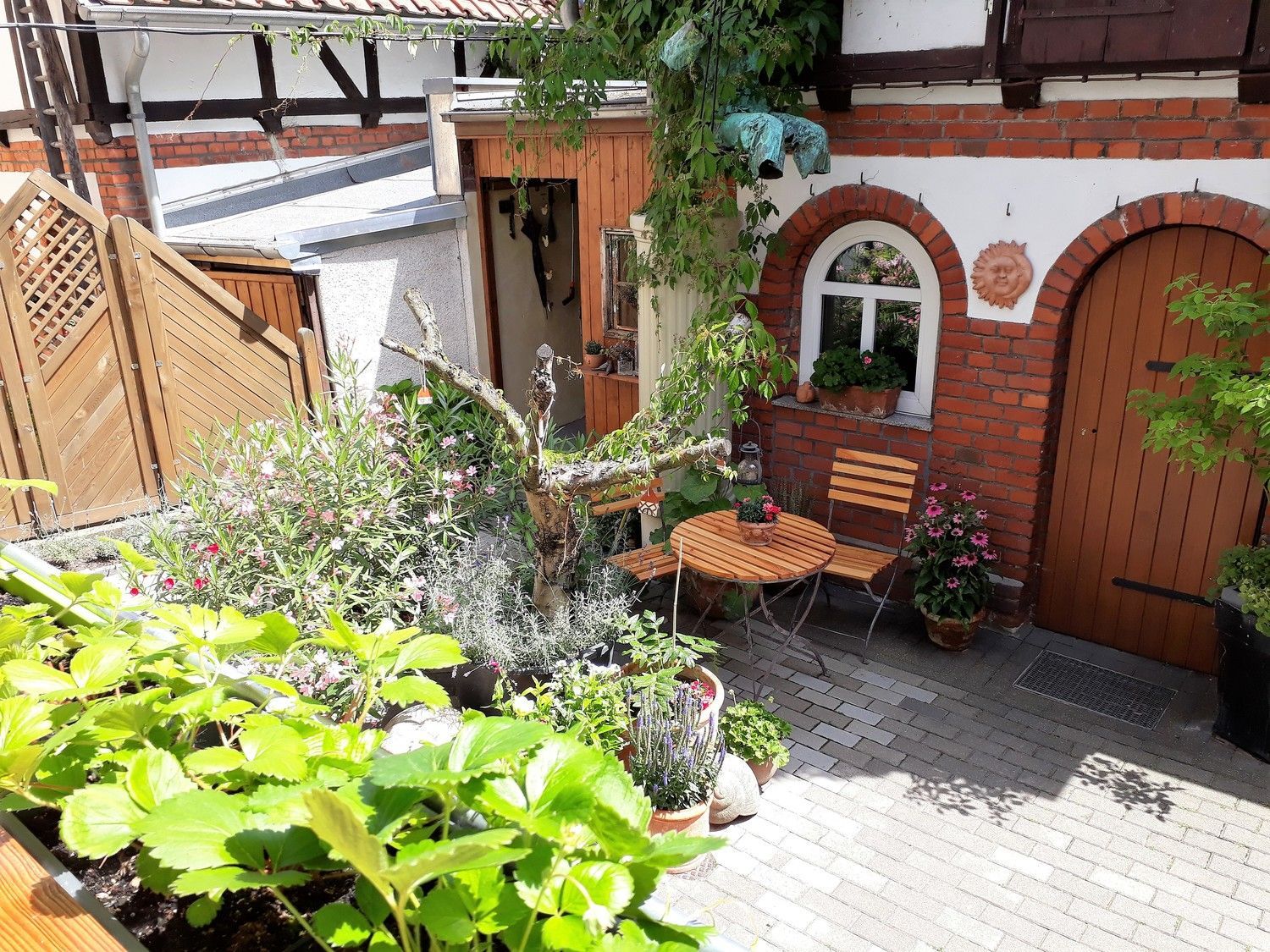 Der Zugang zum Apartment erfolgt über das abgeschlossene Hoftor, der hofseitigen gesicherten Hauseingangstür und liegt nur 5 Stufen höher im Erdgeschoss (Hochparterre).