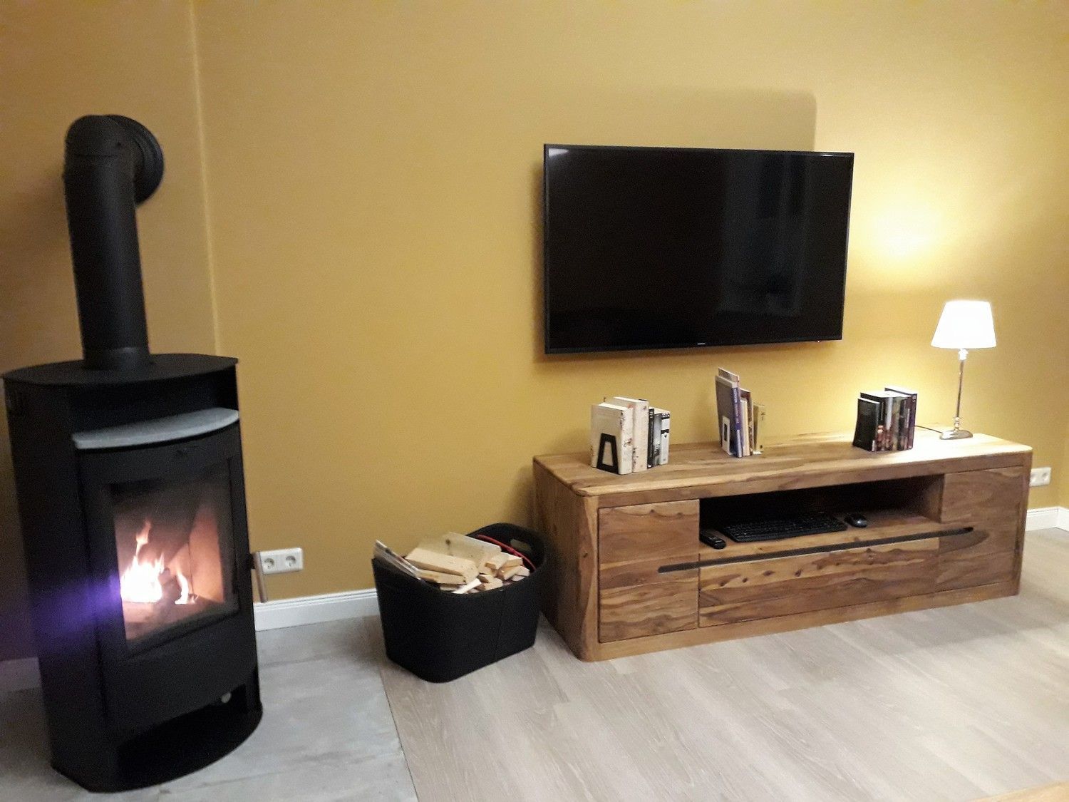 Die Unterkunft ist hochwertig eingerichtet, neben Kaminofen, einer